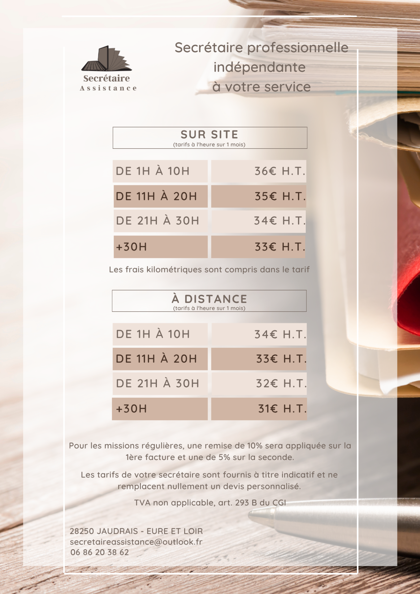 Contactez-moi via le formulaire de contact ou mon adresse mail secretaireassistance@outlook.fr ou sur mon portable 06 86 20 38 62 pour obtenir un devis gratuit et personnalisé.